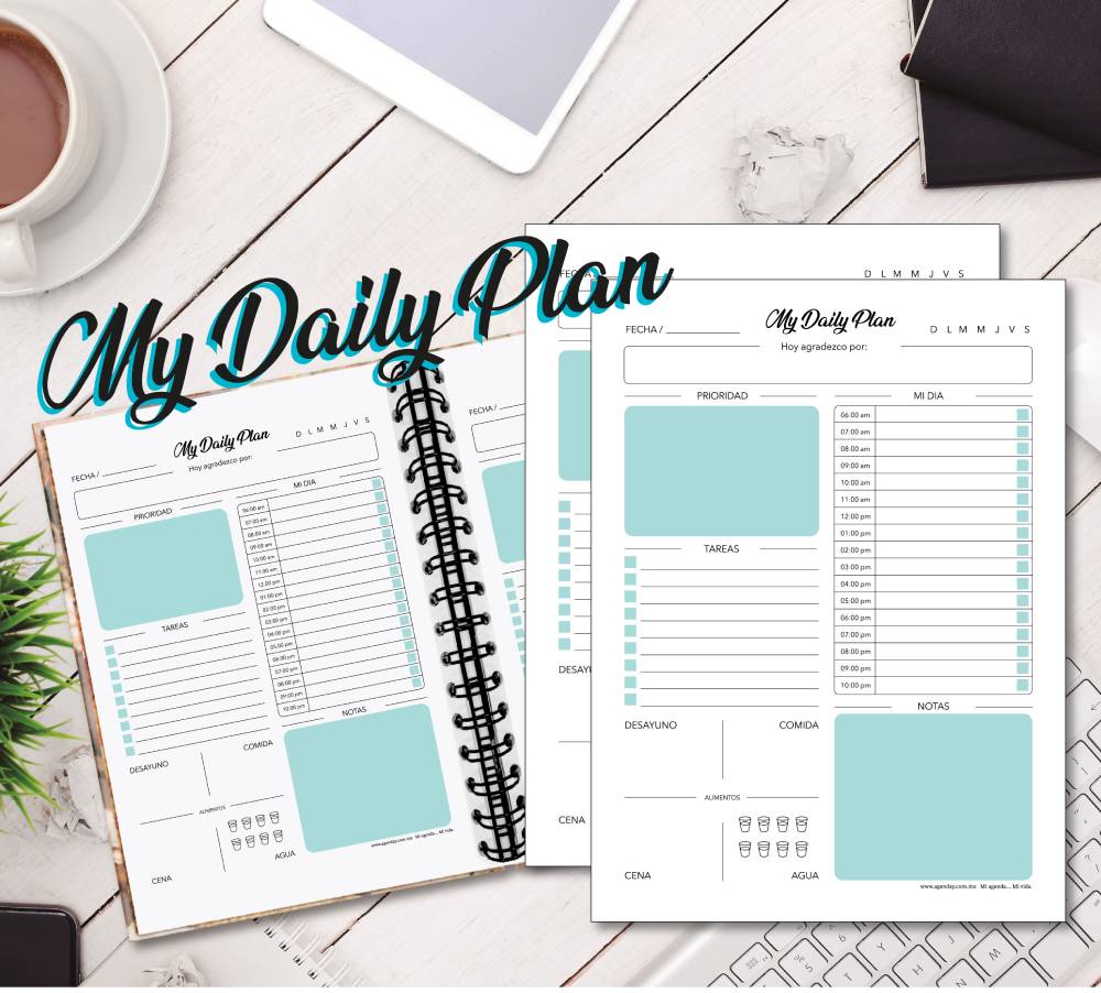 «My Daily Plan» es un planificador de pasta dura listo para usar en cualquier epoca del año, cuenta con 185 hojas equivalentes a 370 páginas para brindar el mejor método de planificar cada día de tu vida.